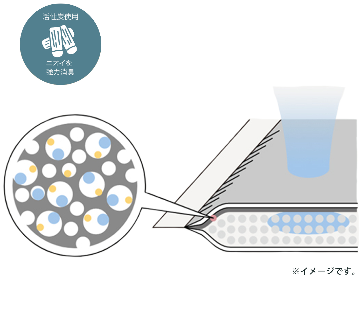 24時間もの間、においを封じ込める超消臭の秘密は、シートの構造にあります。
