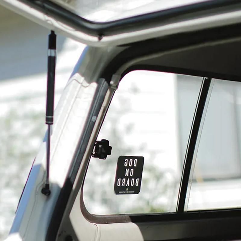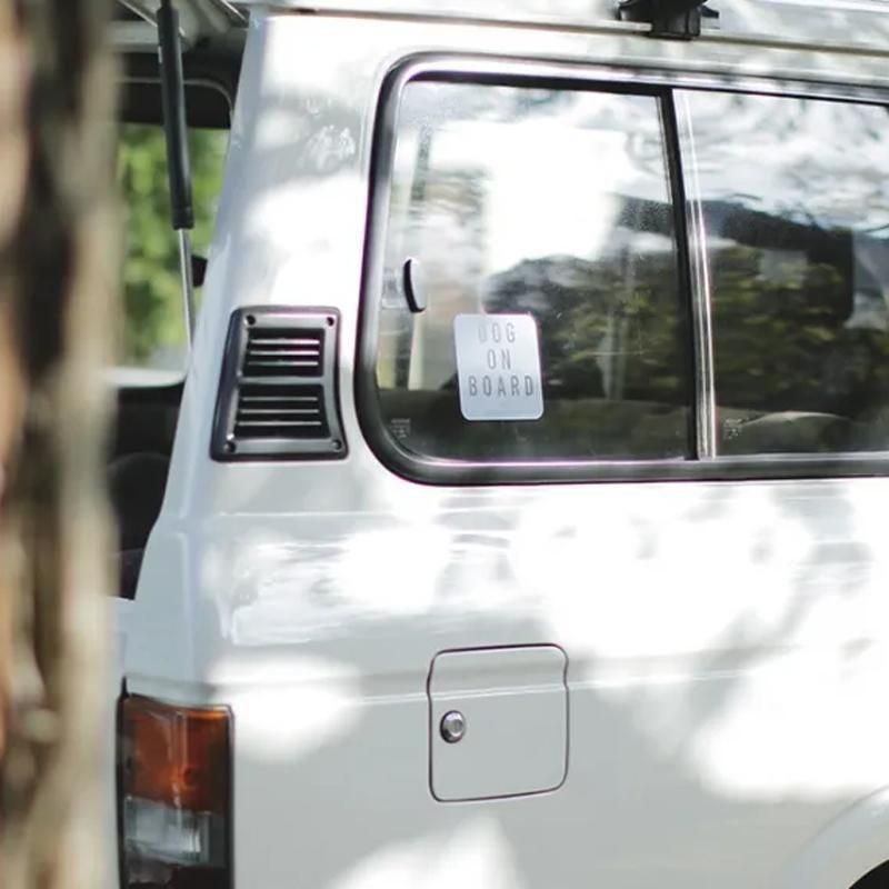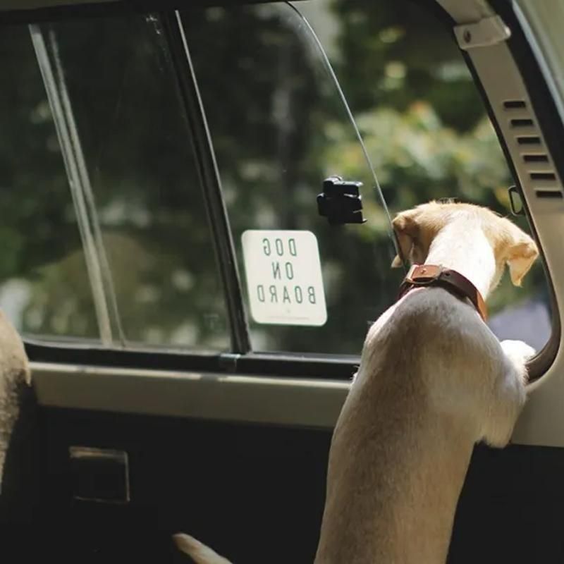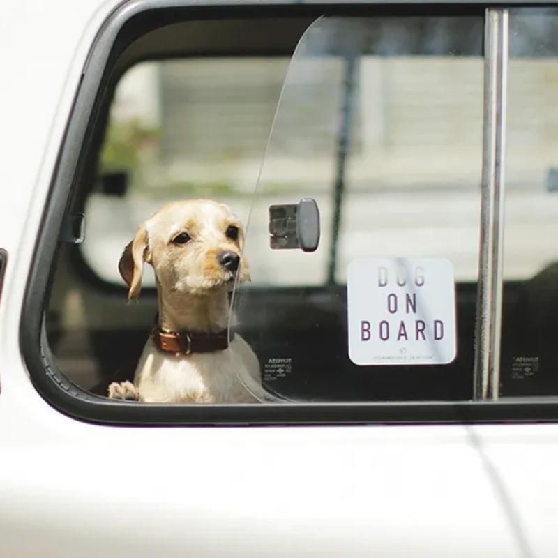 DOG ON BOARDのサインは「犬が乗っていますよ」のしるし。