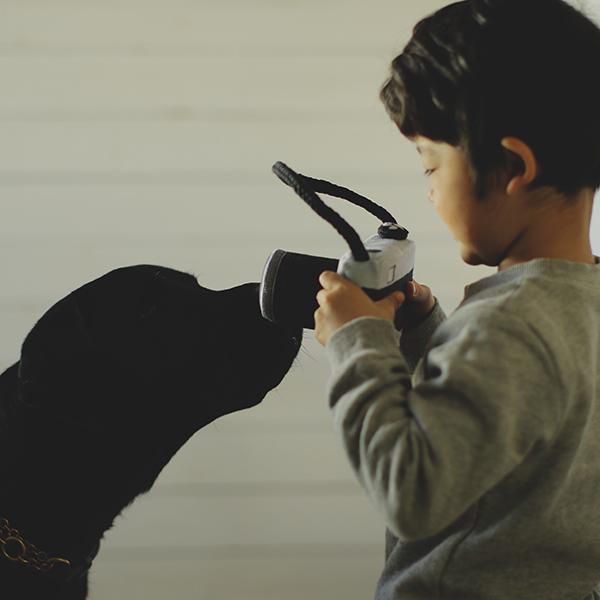 本体部分にスクィーカーが入っていて音が鳴ったり、ロープを引っ張り合いっこして楽しめます。