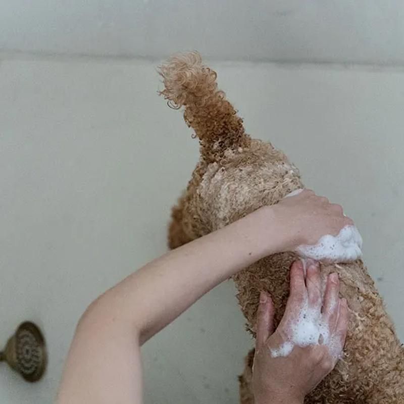 犬のふわふわでツヤツヤな被毛を守り育てるため、シャンプーのすすぎ後は、コンディショナーの使用がおすすめです。