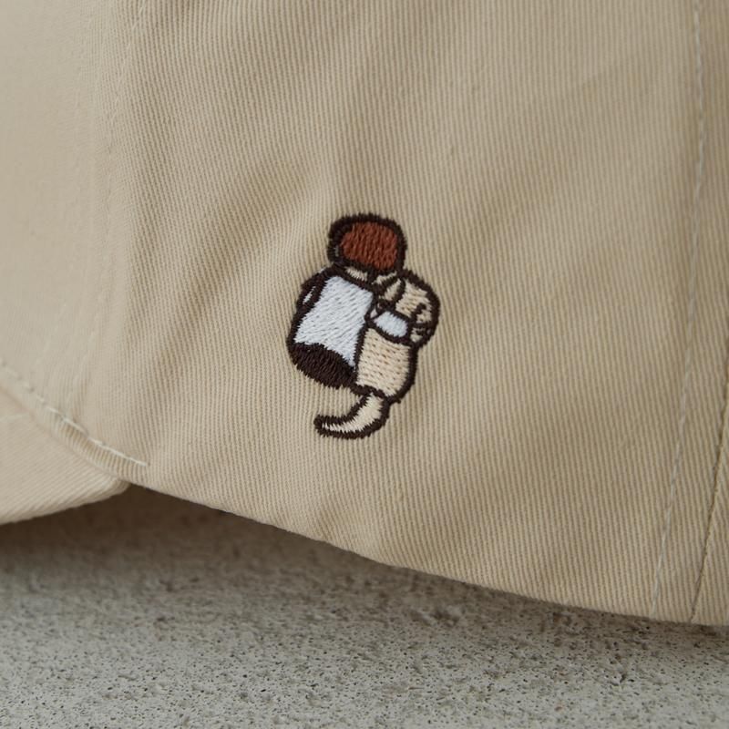 ワンポイント刺繍は、ダークブラウンの輪郭に、ブラウン、ベージュ、ホワイトの糸を組み合わせた、温かみのあるカラーリング。