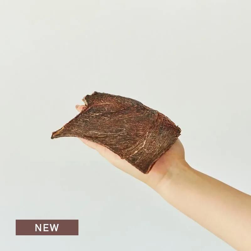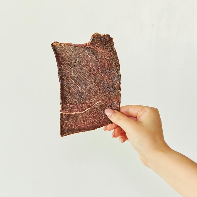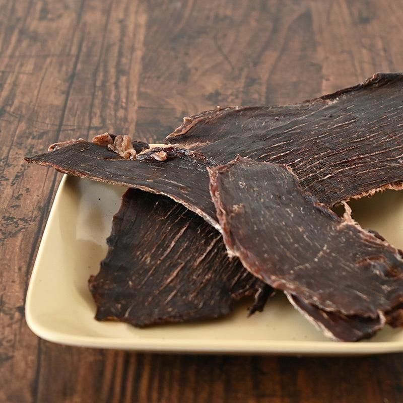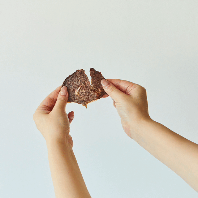人の手で簡単に割れるほどの優しい硬さながら、噛むたびに鹿肉ならではの香りと深い味わいを楽しめます。