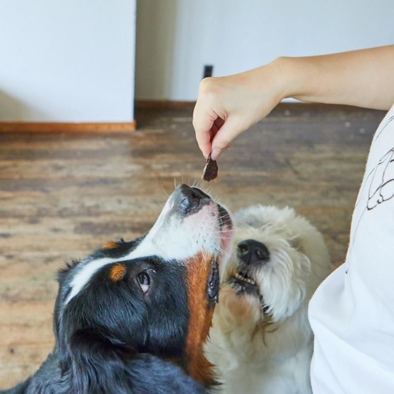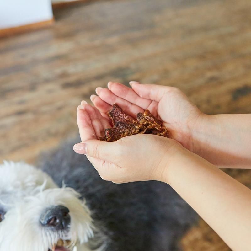 大型犬には一口で贅沢な満足感を、小型犬にはハサミで調整して最適なサイズに。