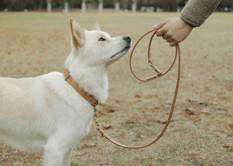 SMOOTH LEATHER LEASHは、スタンダードの1.2mサイズから、ミドル約83cm、ショート約65cmの3wayで使えるリードです。