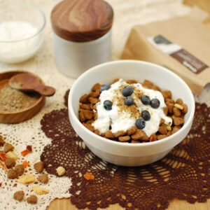 ドライフード : 60g ヨーグルト: 20g ブルーベリー : 適量 酵素のふりかけ:小さじ1