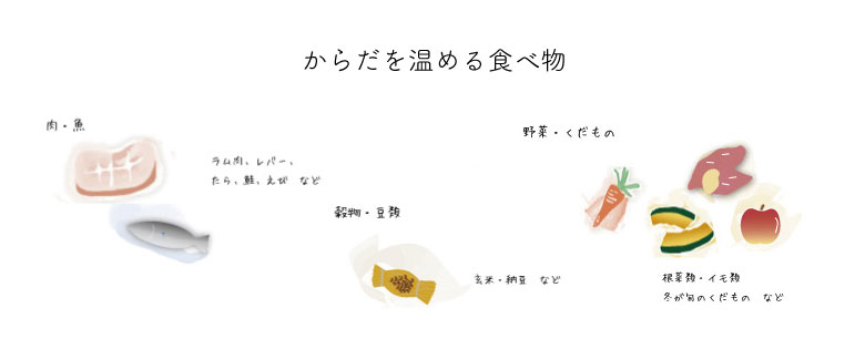 からだを温める効果のある食材を取り入れて、寒さに負けないからだを作っていきましょう。