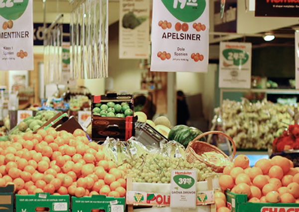スーパーにならぶ、色とりどりの野菜やフルーツ。