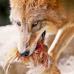 オオカミの食事は、鳥や小動物など主に草食動物を、捕まえて食べることにあります。