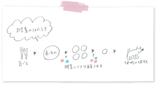それに、草食動物の腸内には、乳酸菌や麹菌などの善玉菌がいて、これらの腸内菌の良質な「酵素」が食べ物の消化を助けている、まさに理想的な環境。
