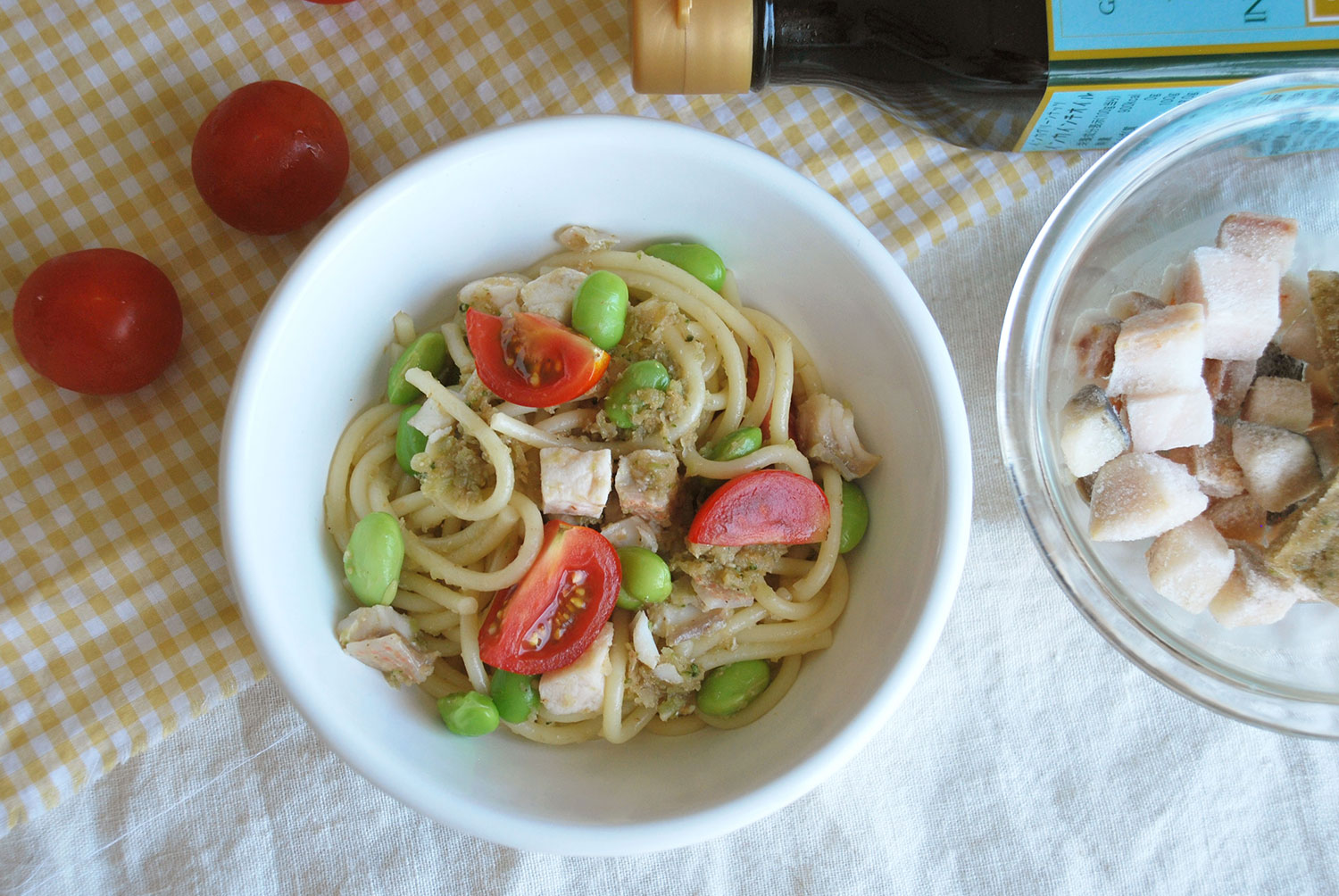 Today’s Recipe/おさかなMIXと枝豆のパスタサラダ