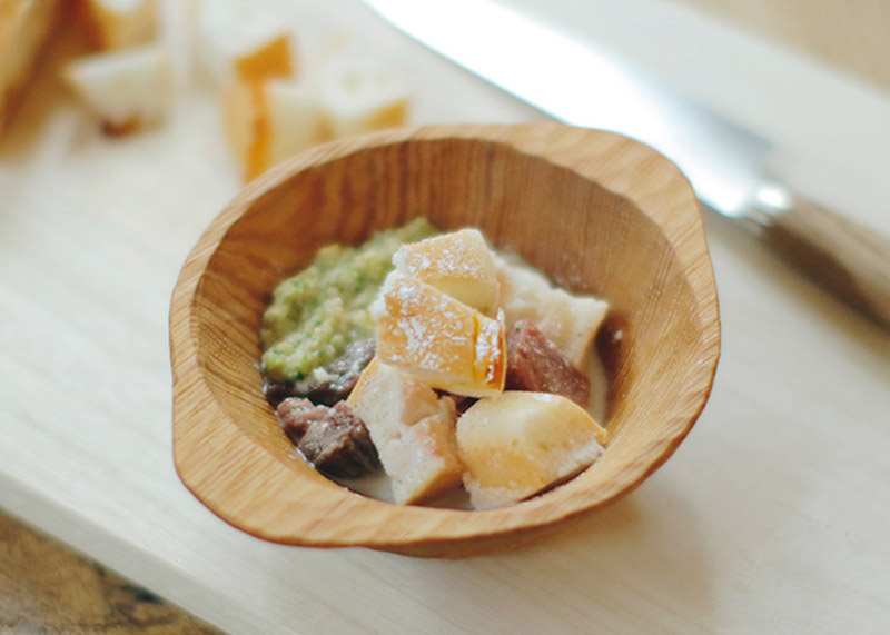 4. お皿に盛り付けて、適当な大きさにカットしたパンを添えたら出来上がり!