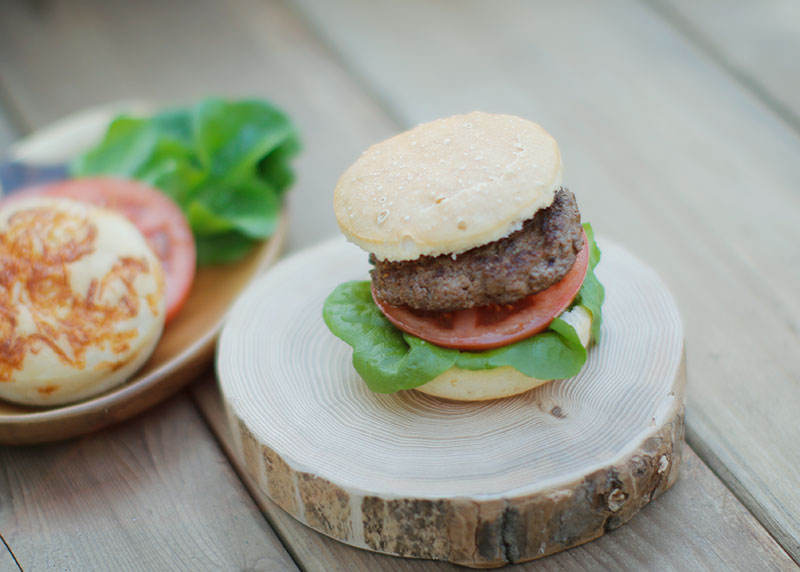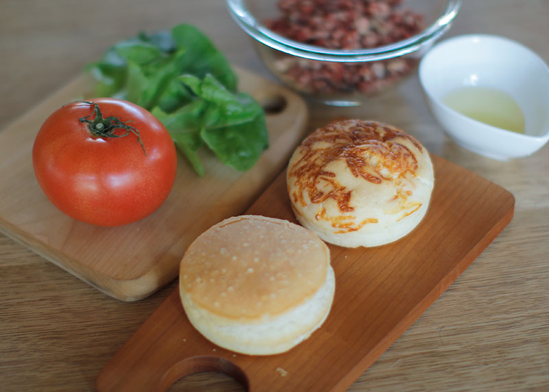 4. パテが冷めたら、野菜と一緒にブレッドに挟んで出来上がり!